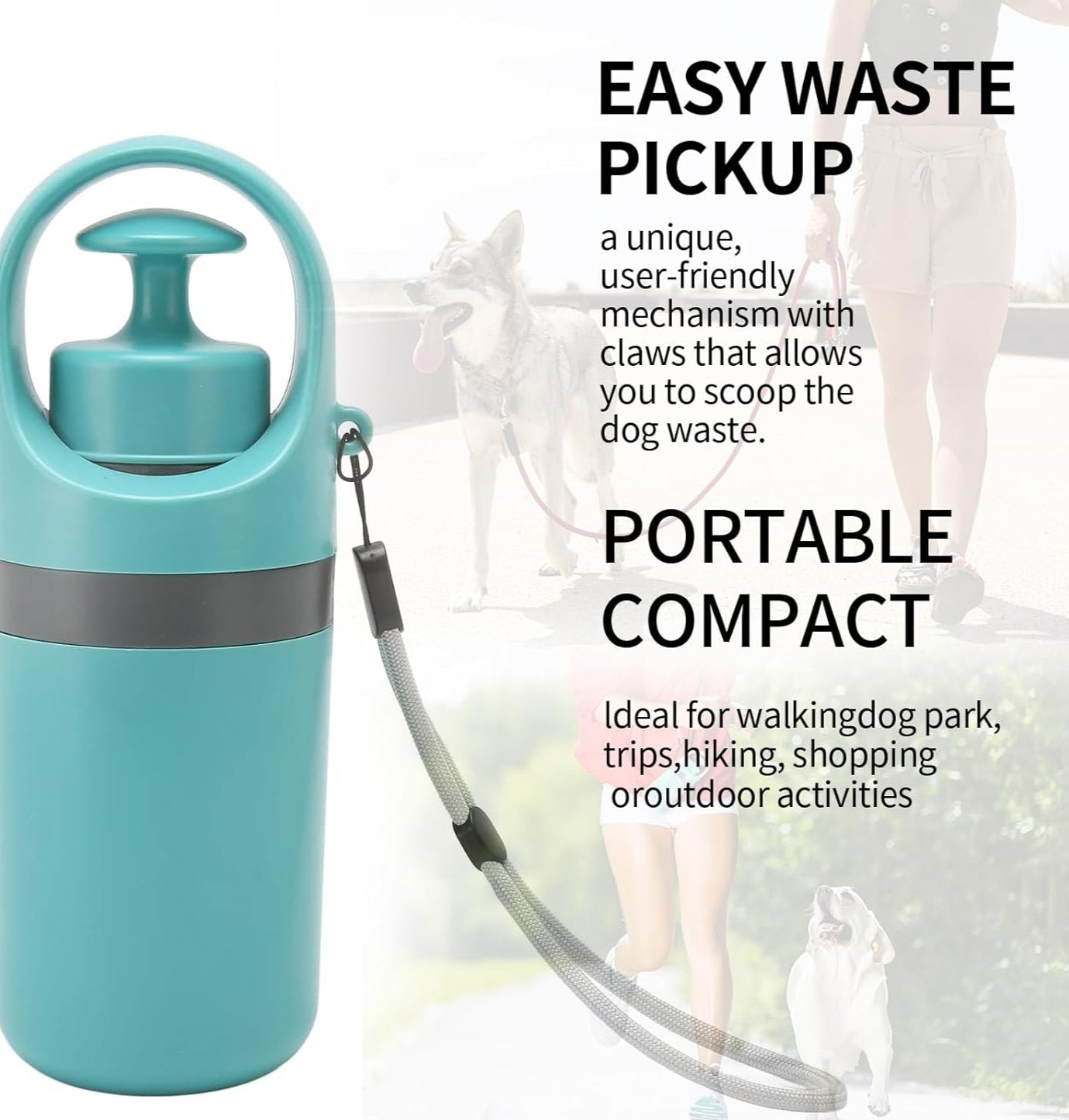 - PORTABLE AND COMPACT: Our dog poop scoop features a compact design in the shape of a tube and comes with a special lanyard that allows you to carry the scooper with ease. Ideal for walking, dog park, trips, hiking, shopping or outdoor activities.